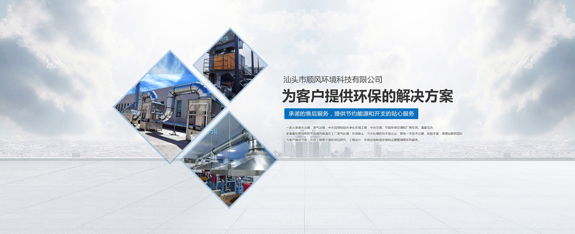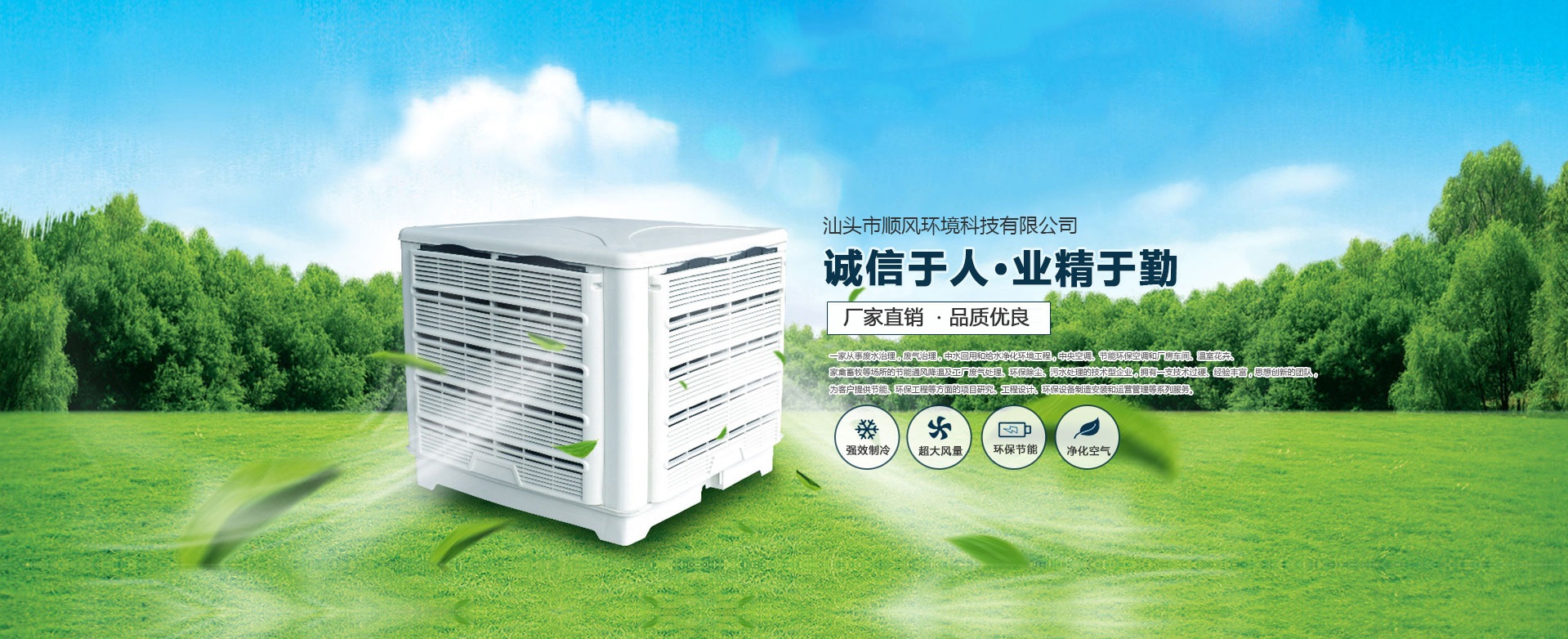 汕頭市順風環境科技有限公司,是一家專注從事廢水治理,廢氣治理,中水回用和給水凈化環境工程,中央空調、節能環??照{和廠房車間、溫室花卉、家禽畜牧等場所的節能通風降溫及工廠廢氣處理、環保除塵、污水處理的技術型企業,擁有一支技術過硬、經驗豐富,思想創新的團隊,為客戶提供節能、環保工程等方面的項目研究、工程設計、環保設備制造安裝和運營管理等系列服務。 多年來,公司堅持 “ 誠信于人,業精于勤” 的宗旨,憑借豐富的工作經驗及雄厚的技術實力為多家大型公司、工廠、養殖、超市等大型綜合場所進行節能通風降溫及廢氣處理、污水處理等工程設計、安裝、維修、年度保養,得到了顧客的一致好評并長期合作。